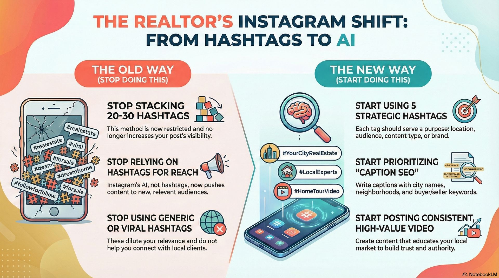 For Realtors, this is not a cosmetic update. It fundamentally changes how buyers and sellers find agents, how listing content performs, and how local authority is established on the platform. If your Instagram strategy has relied heavily on stacking 20 or 30 hashtags at the bottom of every post, this update forces a reset.
